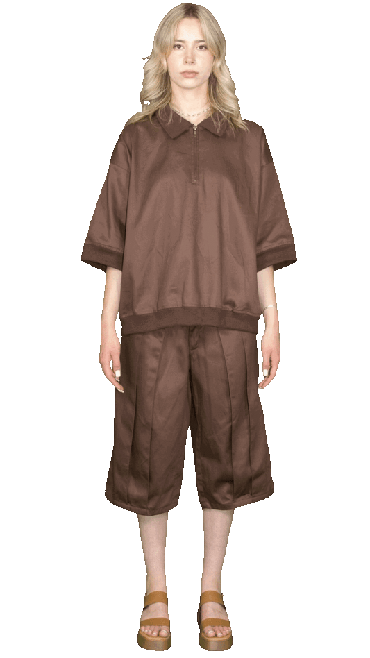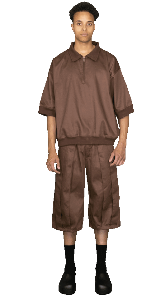 Oversized polo shirt with vintage zip in brown - BOCKENHEIM