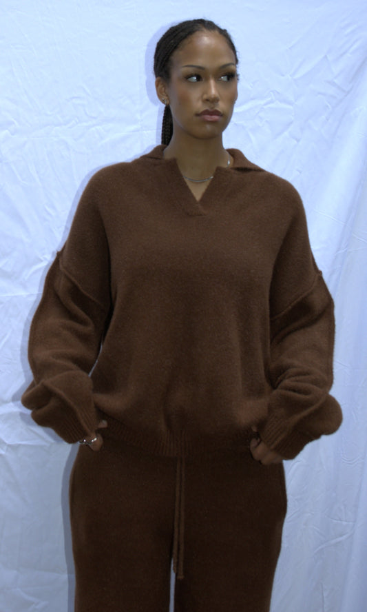 Raw edge polo sweater in brown - AKTOBE