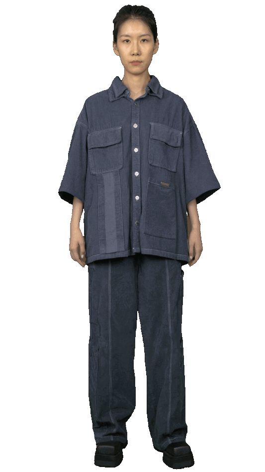 Boxy cord shirt with pockets in navy blue - BRUSSELS