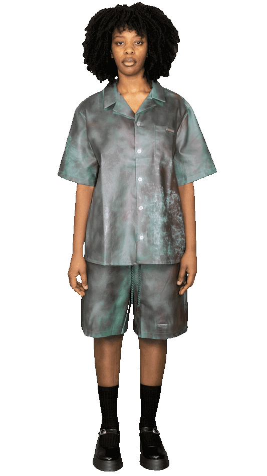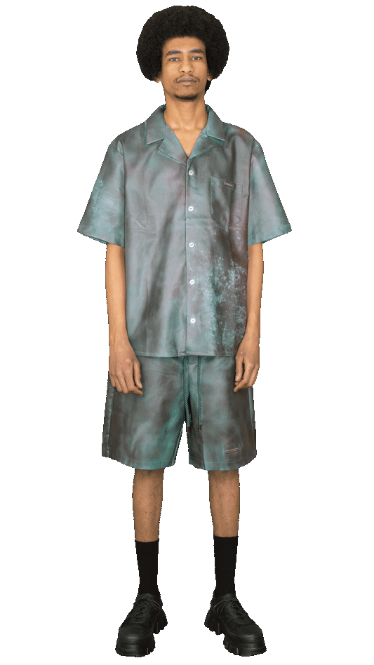 Sprayed print vegan leather shirt in green/brown - PHILADELPHIA