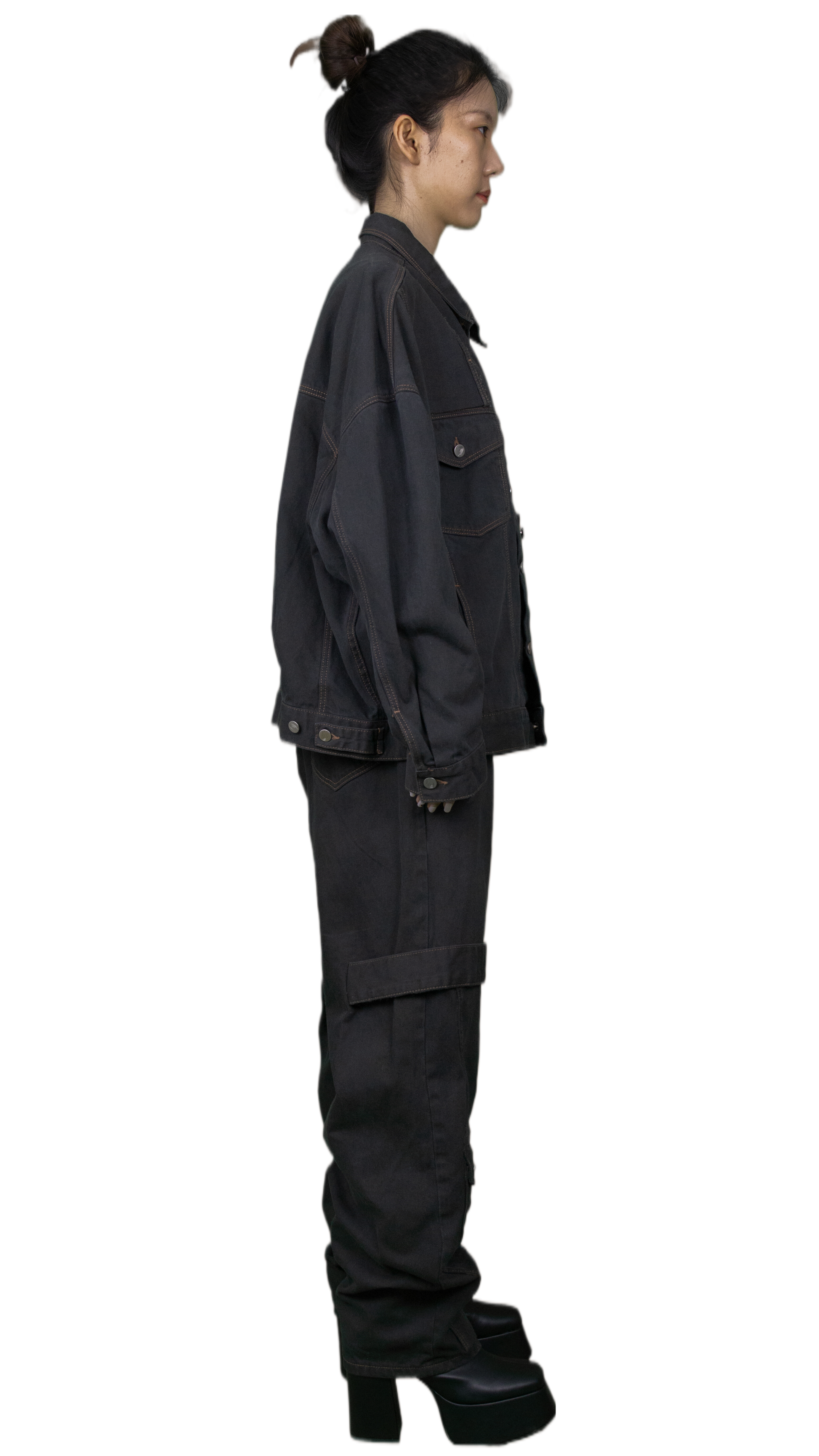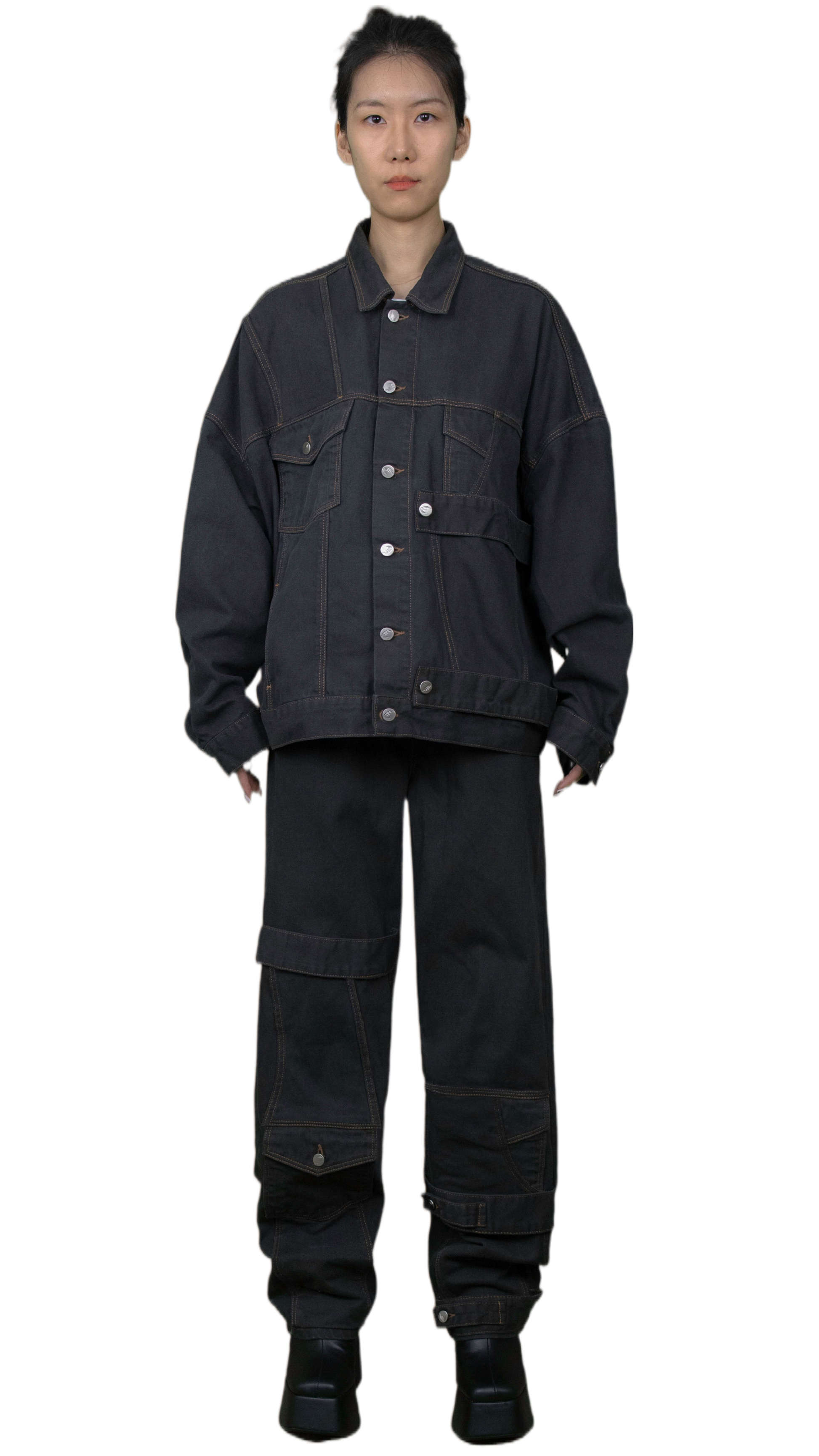 Denim jacket with straps in anthracite- TOKYO