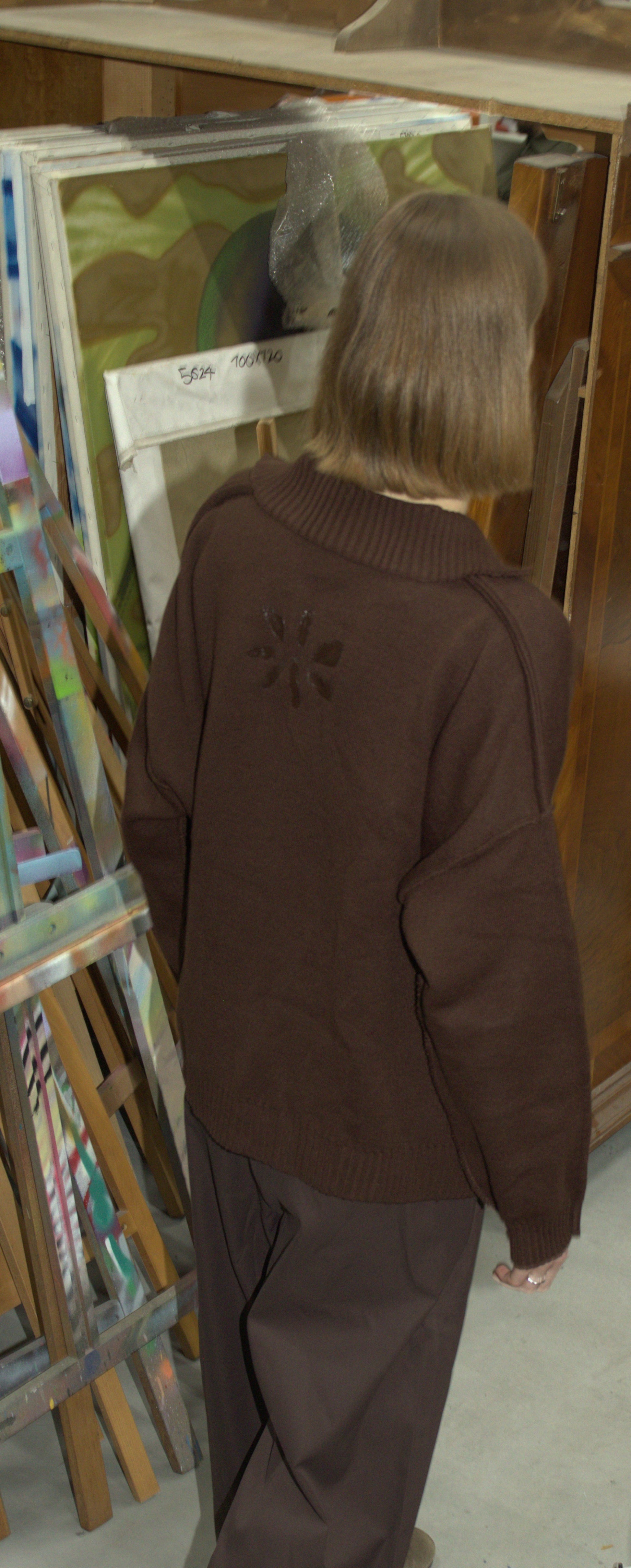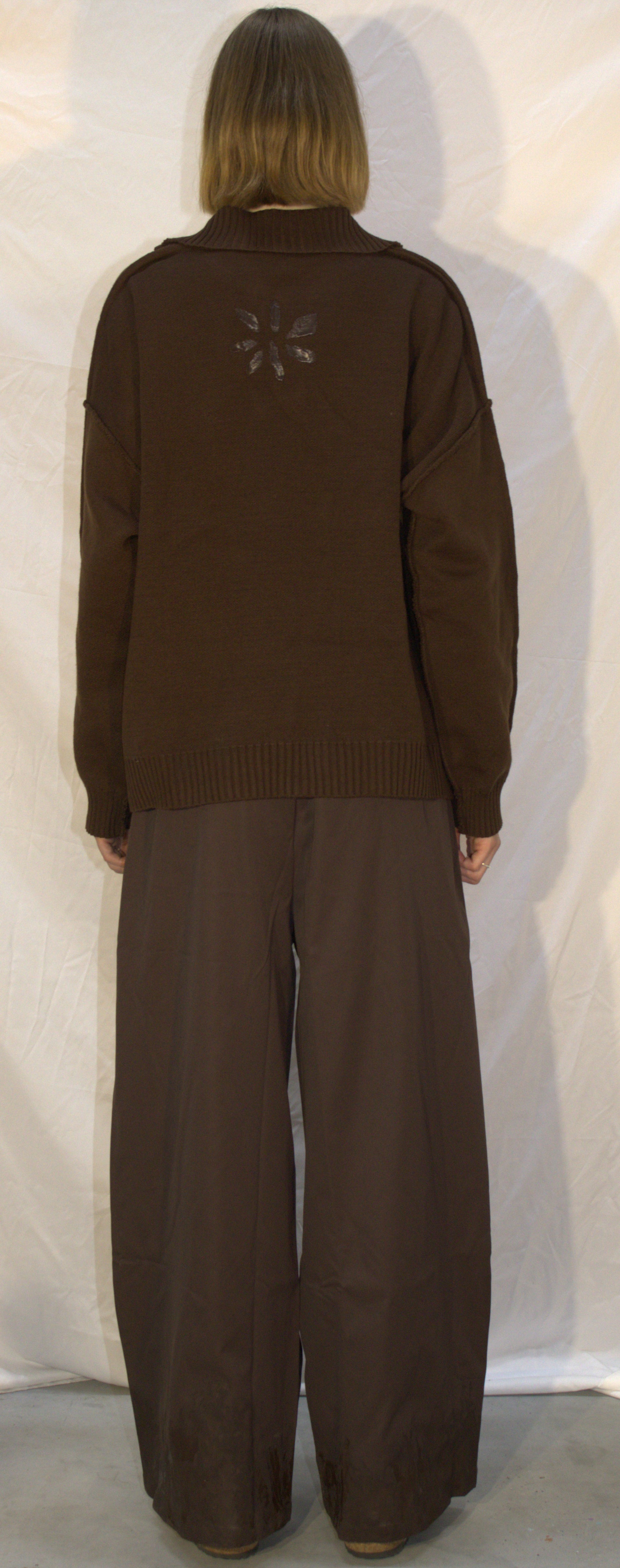 Raw edge polo sweater in brown - AKTOBE